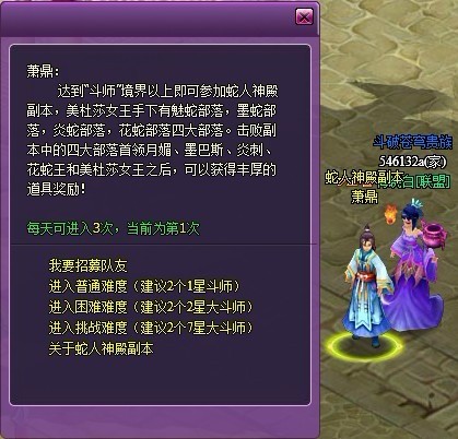 (2)找到帝都NPC萧鼎,和萧鼎对话即可进入蛇人神殿。