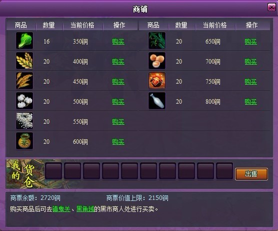 3.购买完货物后,可以选择到镇鬼关或黑角域,找黑市商人多玛弟出售,赚取利润。(注意,商贸过程中,玩家不可以使用传送,回城等功能。)与npc对话,打开商贸商店,将从多玛处购入的货物全部出售。