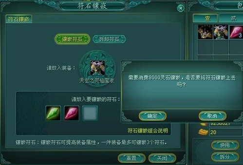 “试炼之门-符石补天匠”处可进行镶嵌和摘除,镶嵌和摘除的时候都需要收取一定的灵石,越高等级的符石,所需要的灵石越多